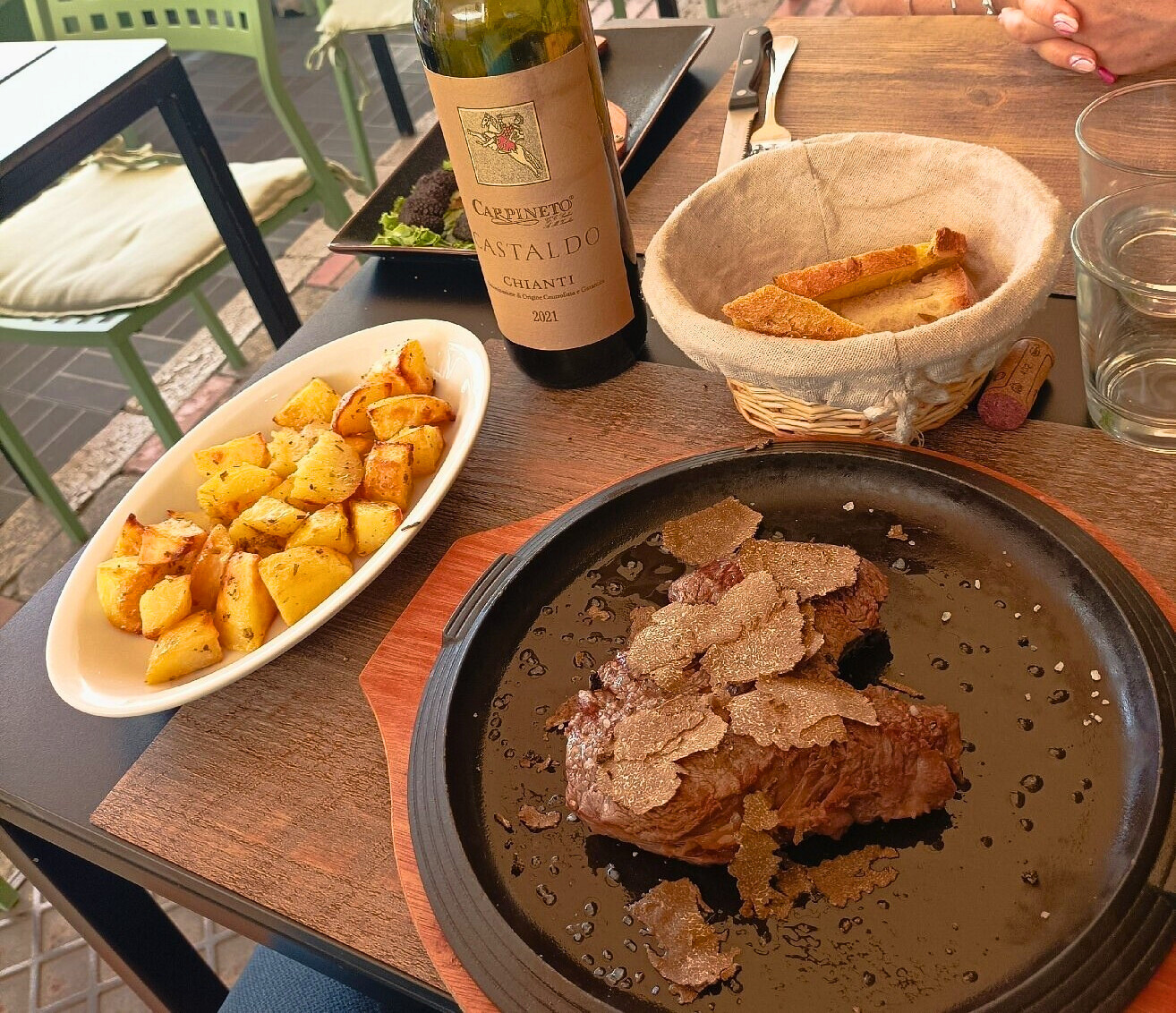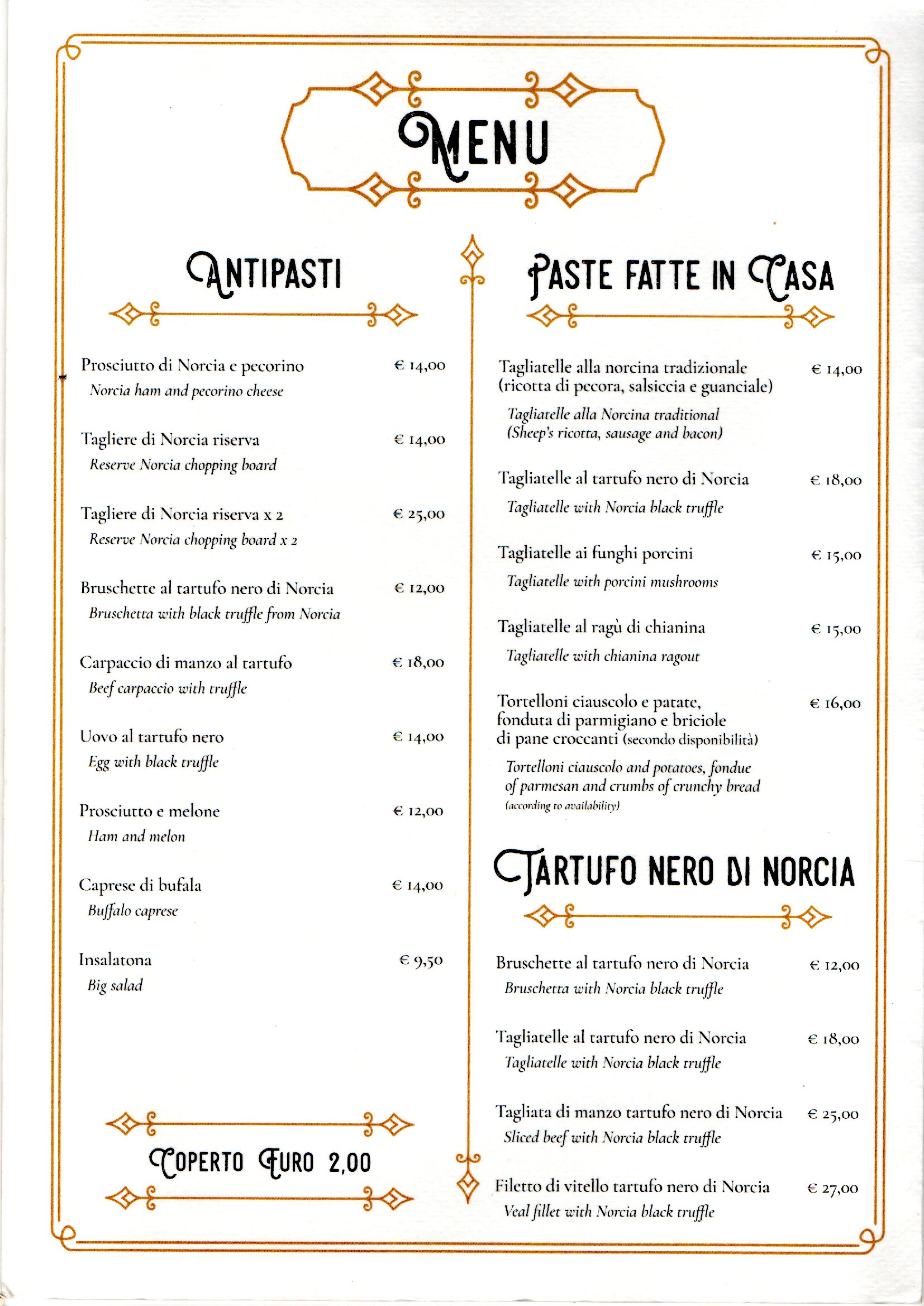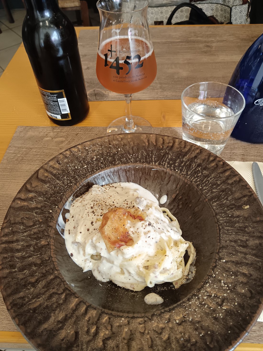 Un bellissimo ristorante a due passi dal lago e affacciato su una bella piazza. Abbiamo preso le tagliatelle alla Norcina e quelle al tartufo, poi un filetto e un entrecote di Norcia con patate al forno: tutto squisito!