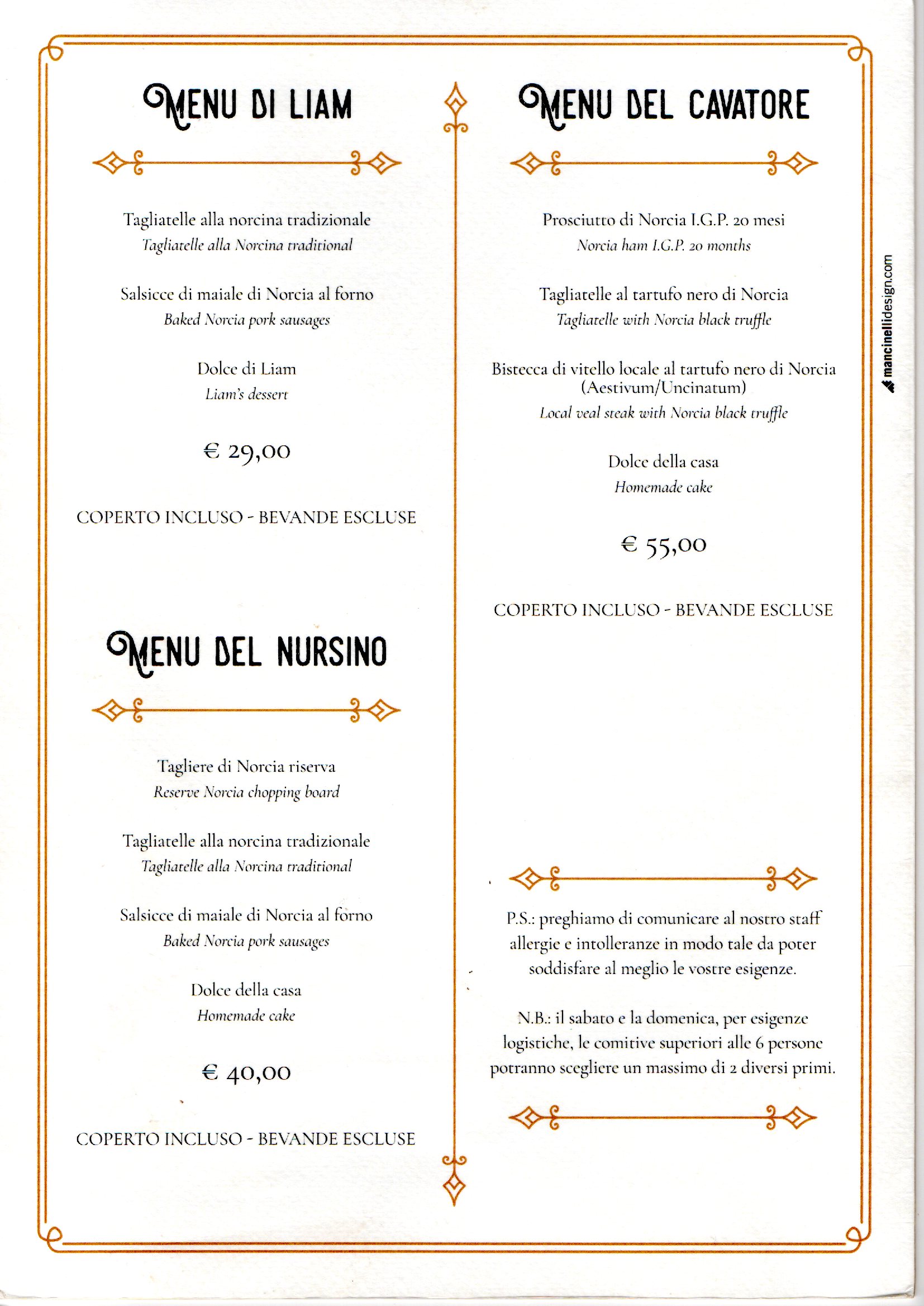Nel 2016, in seguito al terremoto che ha colpito Norcia, siamo stati ospitati nella zona del Lago Trasimeno, e gli abitanti del luogo ci hanno accolto con estrema cordialità e disponibilità. E’ nata così la nostra idea di “RIPARTIRE” , ed è proprio da qui, da Passignano, che abbiamo aperto il negozio “Le Delizie di Norcia, e ora anche “L’Osteria da Liam”, e tutto questo per far conoscere i nostri sapori, gli odori e i colori dei prodotti tipici di Norcia e Castelluccio, il tutto accompagnato da Vini e Olio di produzione Umbra.